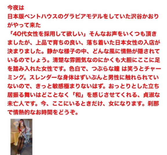 『こんばんわ』と独特のイントネーションの日本語で挨拶しながら部屋の中に入ってきます(チェンジの確認等は無かったですね)。小柄で大きなお胸、渋めの柄のミニのワンピース姿で、ノーブラと言うのが一目でわかります。綺麗な奥様?と言った雰囲気です。